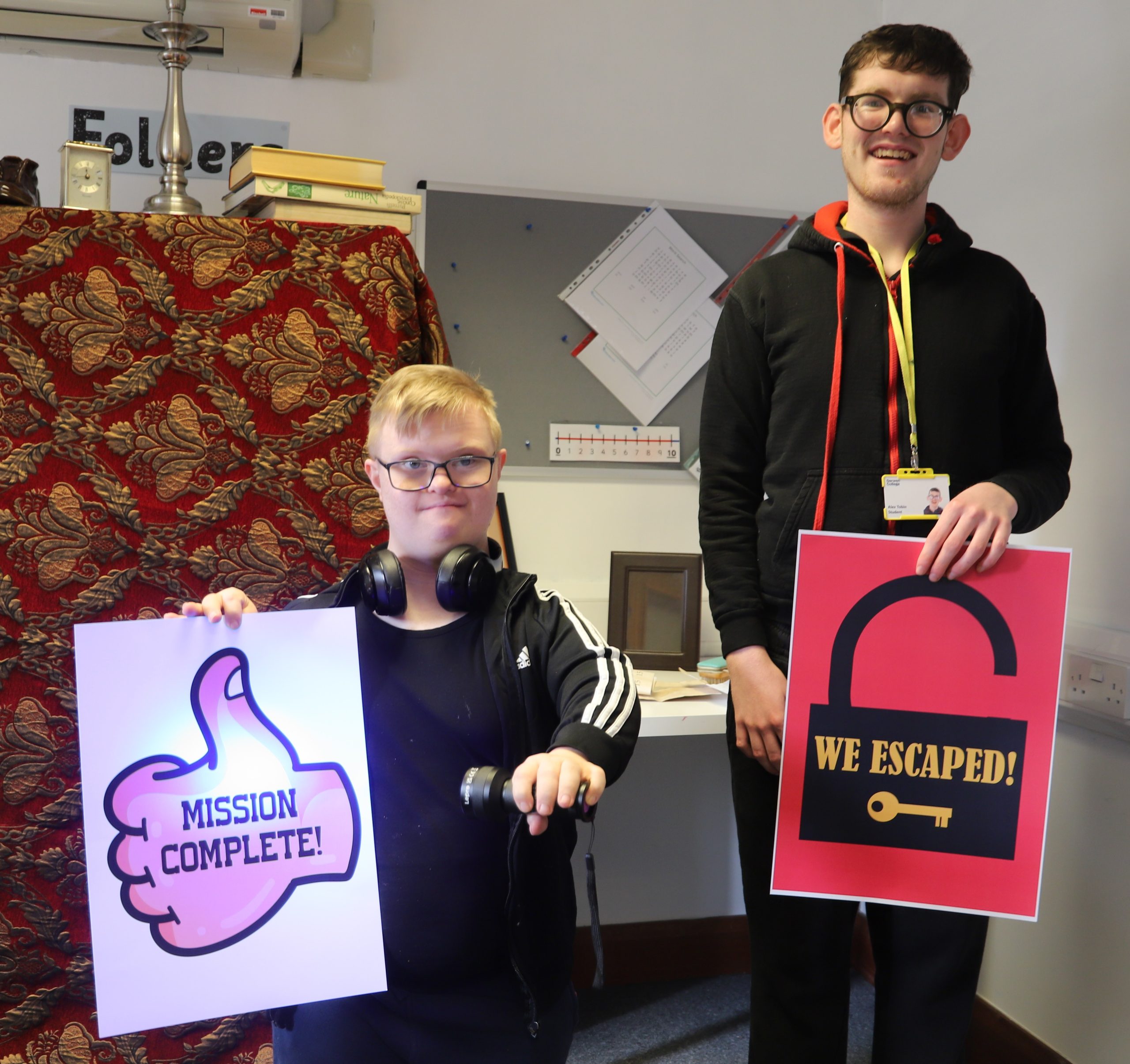 Armed with an ultraviolet torch, they searched for secret messages and pieced together clues. The final puzzle revealed the message ‘Reading Opens Doors’, and students celebrated as they solved the challenge and successfully escaped. Student George, who is on our Learning for Life pathway, said: Wow, I love that, so good” after he solved the clues and ‘escaped’.